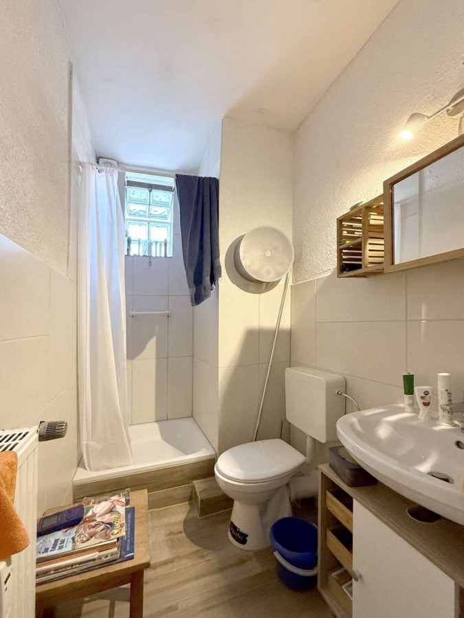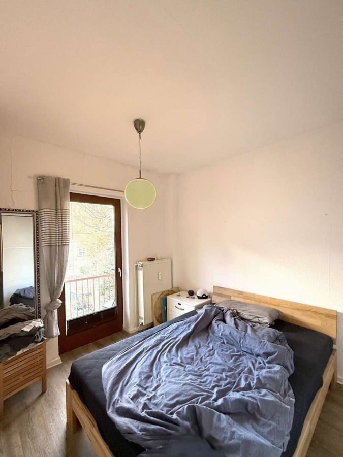 Diese hübsche Wohnung in stark nachgefragter Lage besticht durch eine gute Grundrisslösung. Ein zentraler Flur verteilt in die Zimmer. Die „rot/weiß“ geflieste Küche ist, ebenso wie das vor ca. 5 Jahren modernisierte, helle Duschbad zur Rückseite des Hauses gelegen, die beiden ineinander gehenden Wohnzimmer liegen zur Sonnenseite. Eine Trennung der Zimmer mit neuem Zugang vom Flur wäre baulich sicher einfach umzusetzen. Das Schlafzimmer bietet ausreichend Platz für Bett und Schrank und verfügt zudem über einen kleinen Balkon, ideal zum Entspannen.