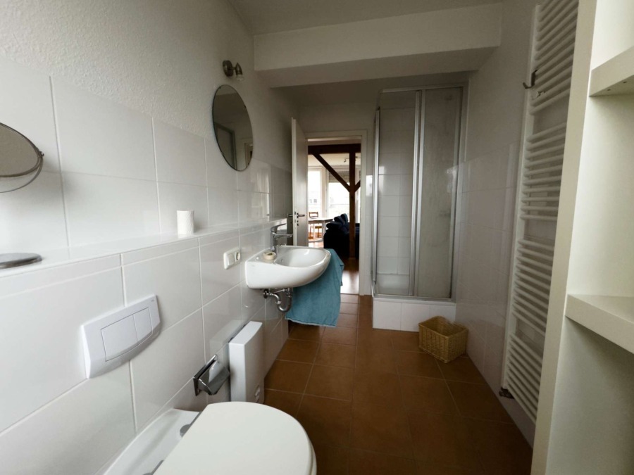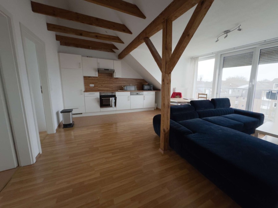 Die Wohnung ist hell und freundlich und liegt im Dachgeschoss des Hauses.