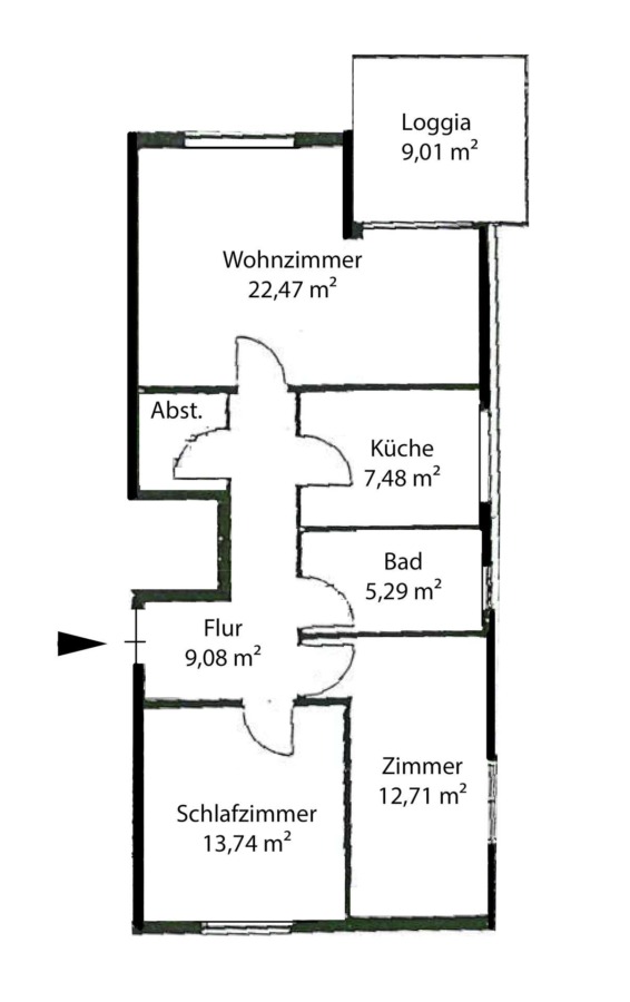 Auf knapp 75 gut geschnittenen m² Wohnfläche befinden sich 3 Zimmer, eine separate Küche, ein modernes Tageslicht-Badezimmer, ein Flur, ein Abstellraum und ein großer Balkon.